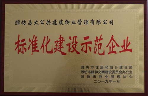 2019年1月被評(píng)為“標(biāo)準(zhǔn)化建設(shè)示范企業(yè)”