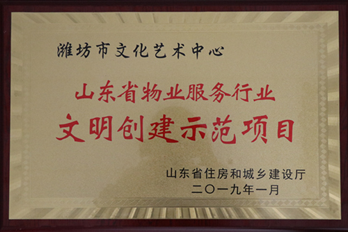 2019年1月濰坊市文化藝術(shù)中心物業(yè)管理項(xiàng)目被評(píng)為“山東省物業(yè)服務(wù)行業(yè)文明創(chuàng)建示范項(xiàng)目”